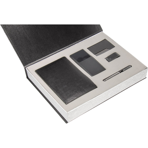 * 13 x 21 cm Termo Deri Defter (Ulus) * Tükenmez Metal Kalem (0555-335) * Kutu: Cilt Bezi